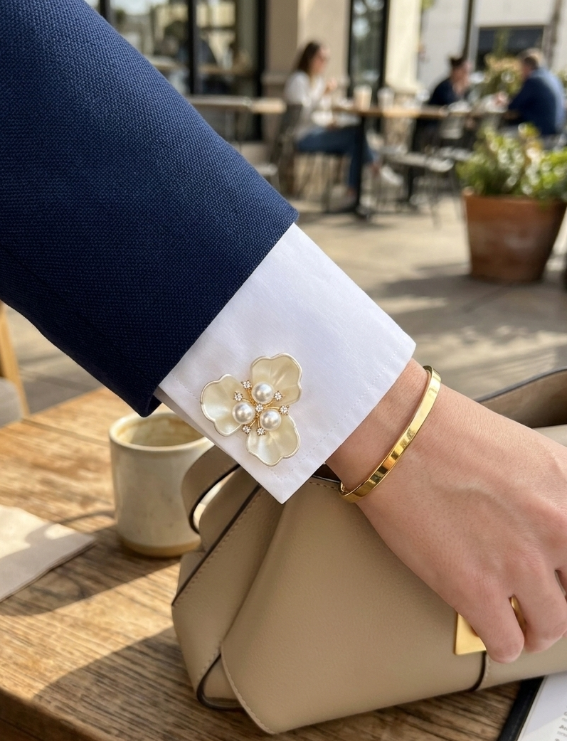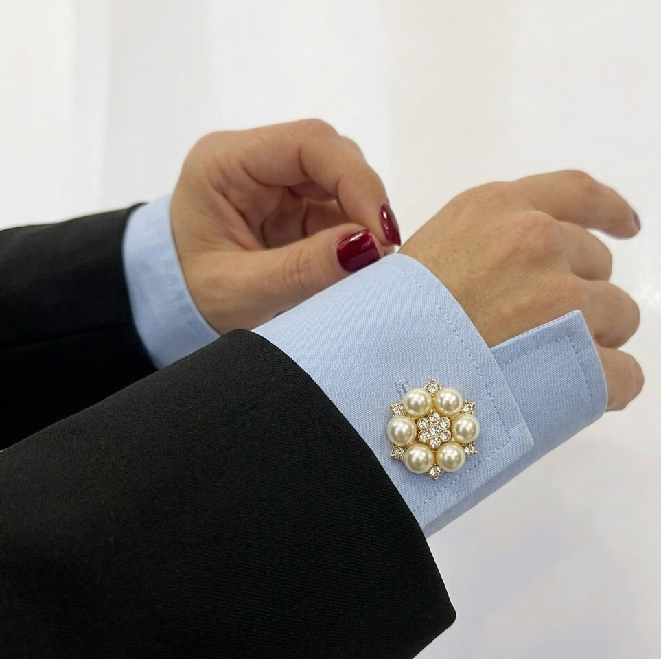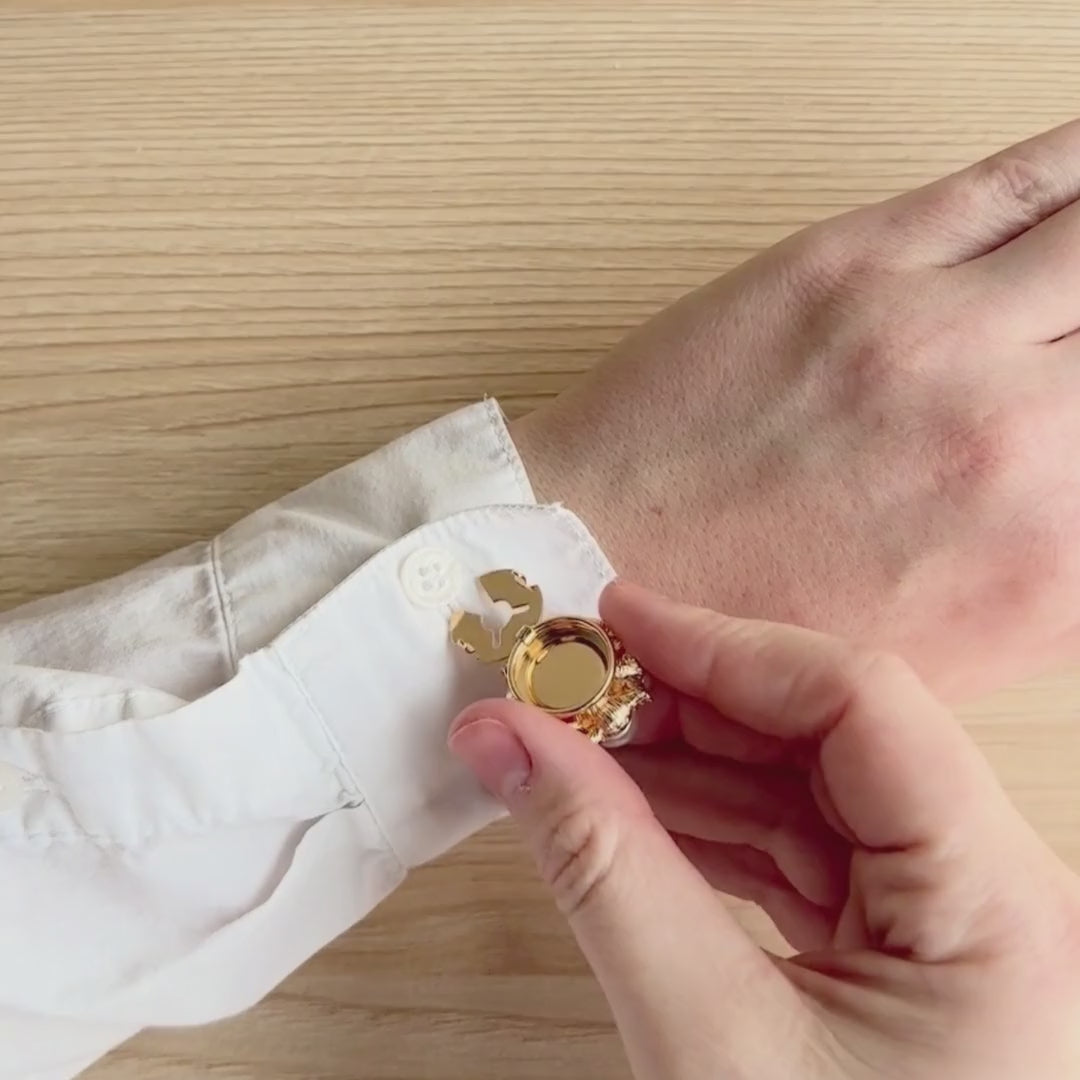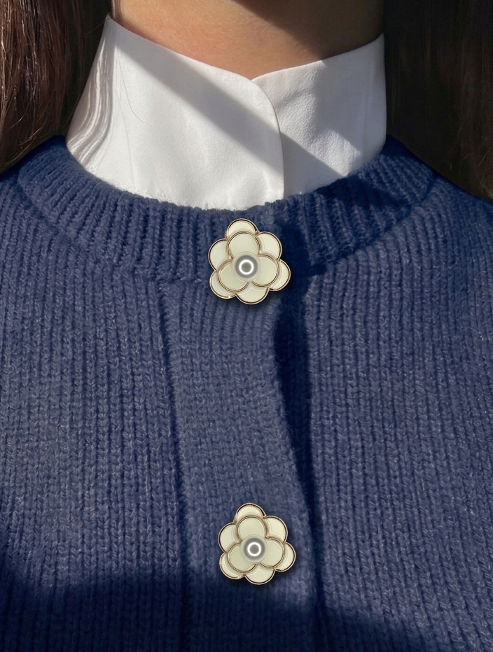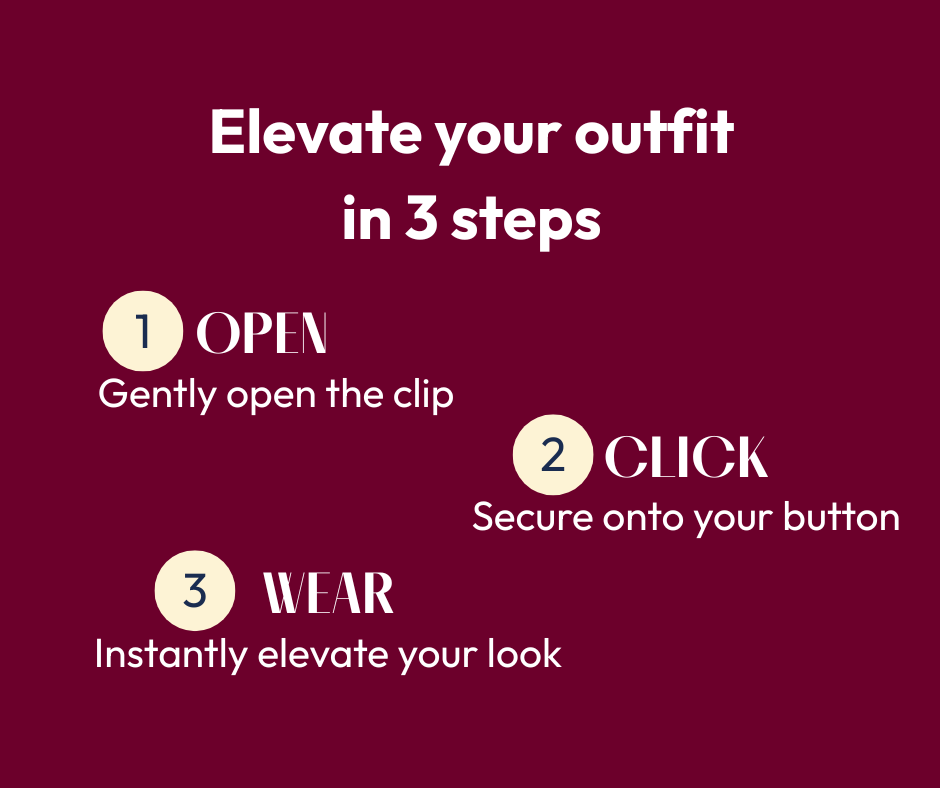 They gently clip over your existing buttons, instantly transforming simple blouses, shirts, and blazers into something more refined — with no alterations required.